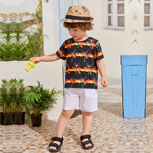 Venutaloza Cocount Tree Round Neck Stripe T-Shirt For Boys & Baby Girl's.