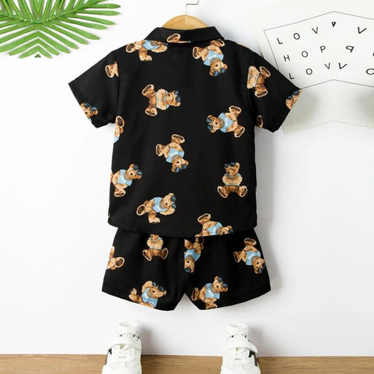Venutaloza Kids Evryday Bear Casual Shirt & Shorts Without tee Two Piece Set.