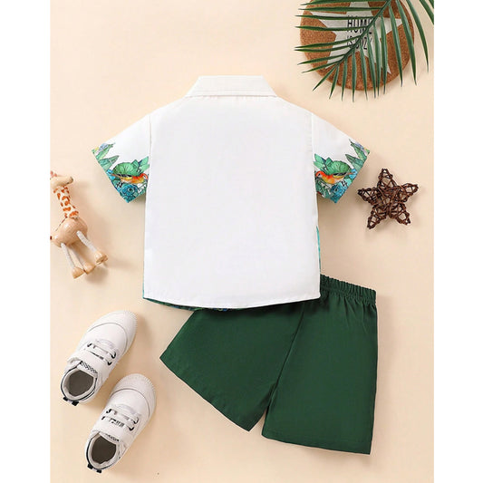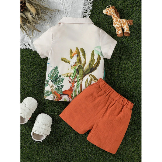 Venutaloza Baby Boy Palm Tree & Animal Printed Short Sleeve Shirt And Shorts Two Piece Set.