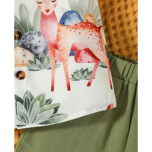 Venutaloza kids Animal Graphic Short Sleeve Shirt And Shorts Two Piece Set.