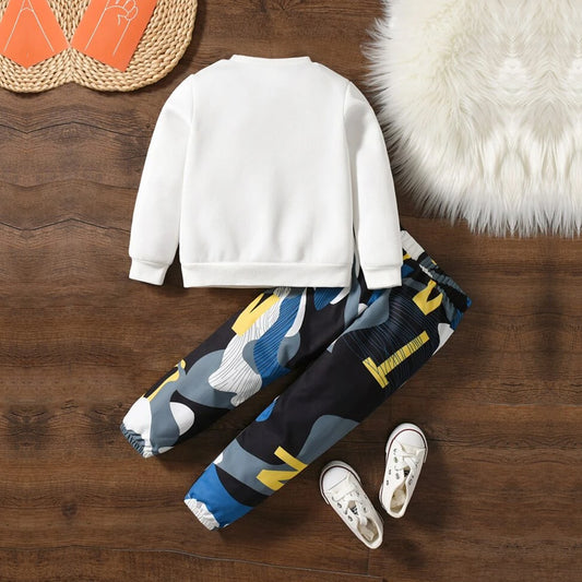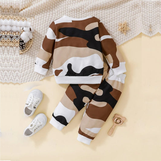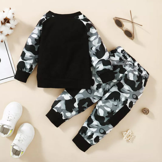 Venutaloza Baby Set Color-Block Letter And Camo T-shirt & Pants.