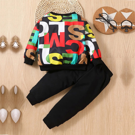 Venutaloza Toddler Boys Letters Graphic Pullover & Cami Pent T-shirt & Pants.
