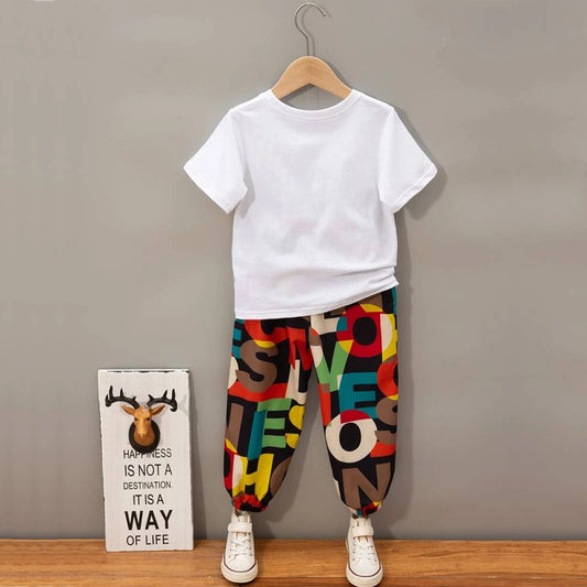 Venutaloza Boys White Letter Graphic Tee T-Shirt & Pants.