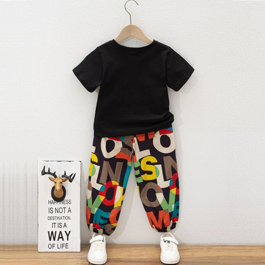 Venutaloza Boys Black Letter Graphic Tee & Pent T-Shirt & Pants.