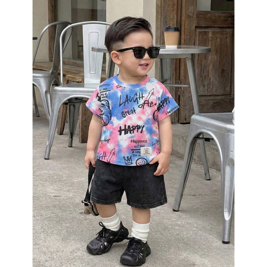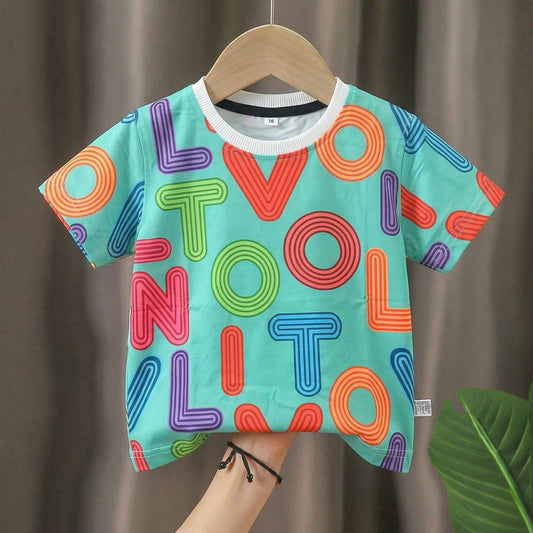 Venutaloza Toddler Letters Graphic Tee Print Short Sleeve T-Shirt For Boy's & Girl's..