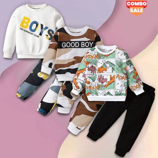 Venutaloza Stylish Baby Set Good Boy & Colorblock Dinosaur & Boys Letters (Combo Pack Of 3) T-Shirt & Pants.