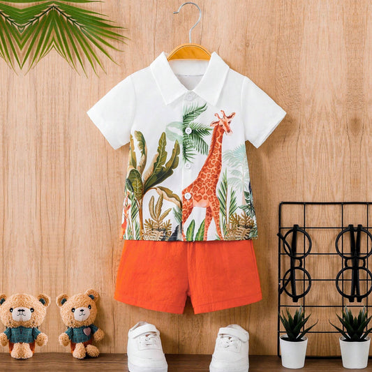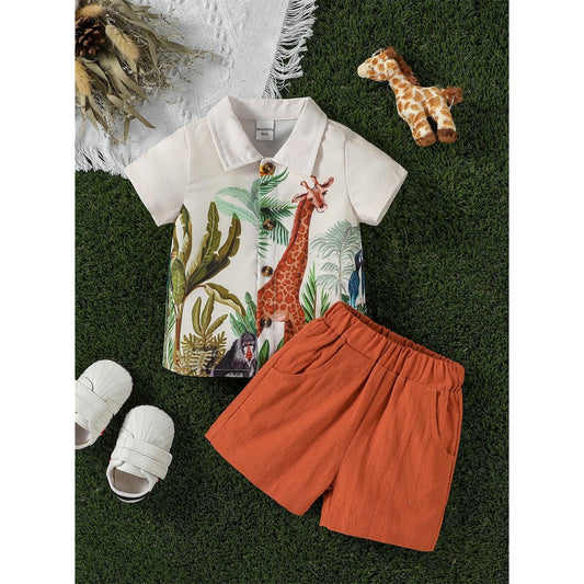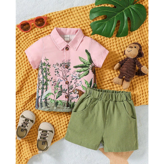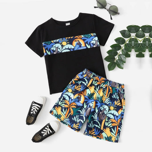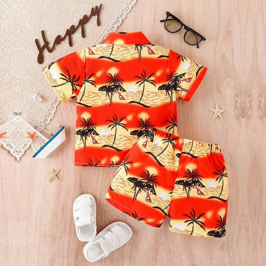 Venutaloza Stylish Kid's Sunshine Tropical Print Shirt & Shorts Without tee Two Piece Set.