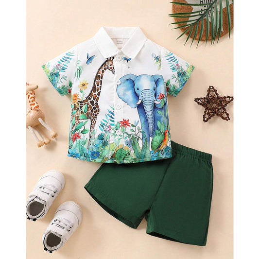 Venutaloza Baby Set Casual Jungal Theme & pocket (Combo Pack Of 2) Shirt & Shorts Without tee Two Piece Set For Boy & Girls.