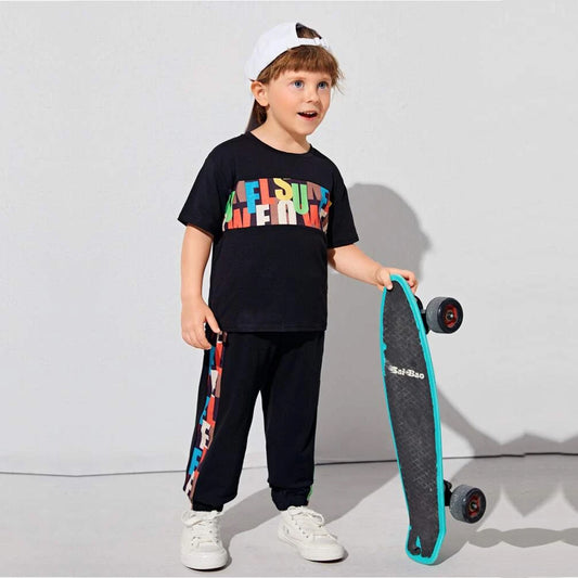 Venutaloza Stylish Baby Set Black Graphic Print & Colorblock Multicolor (Combo Pack Of 2) T-Shirt & Pants.
