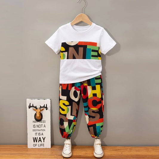 Baby Set Letter Graphic & Car Color-Block Letter (Combo Pack Of 2) T-shirt & Pants.