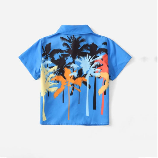 Venutaloza Boy's Coconut Tree Blue Print Shirt For Boy.
