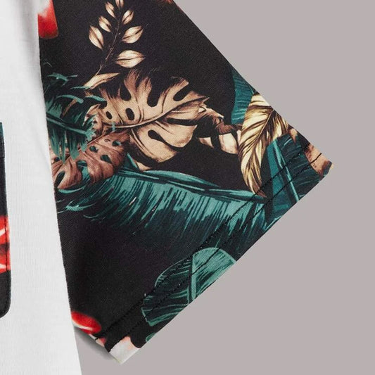 Venutaloza Toddler Boy's Tropical Print Panel Patch Pocket T-Shirt For Boy's & Girl's..
