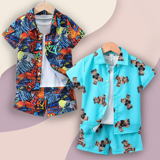 Venutaloza Panda & Jungal Theme (Combo Pack Of 2) Shirt & Shorts Without tee Two Piece Set For Boy & Girls.