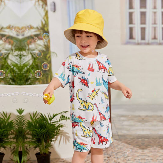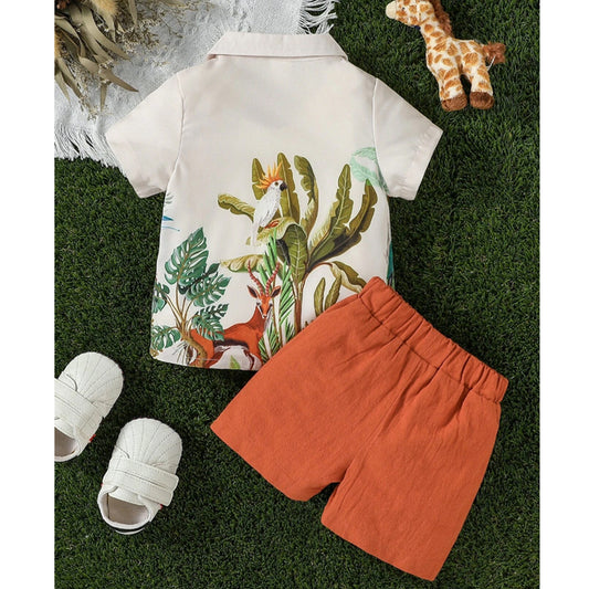 Boy's Animal Jungle Short Sleeve Shirt And Shorts Two Piece Set.