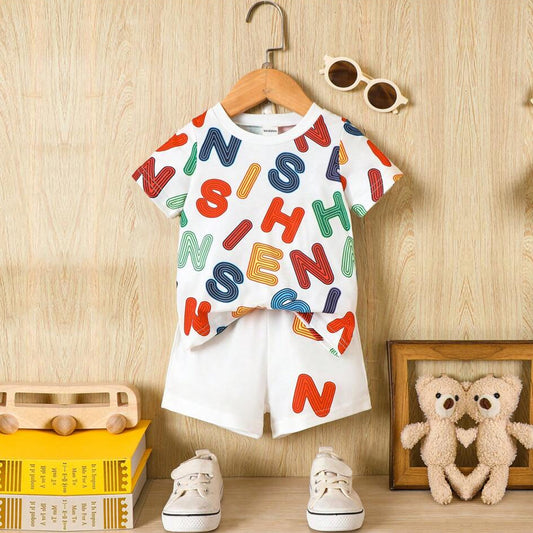 Venutaloza Baby Set Color-Block Letter & Boys Alphabet Letter Patchwork (Combo Pack Of 2) T-shirt & Pants.