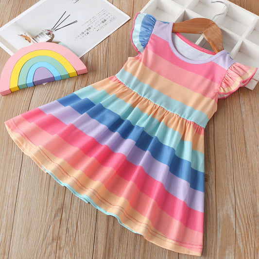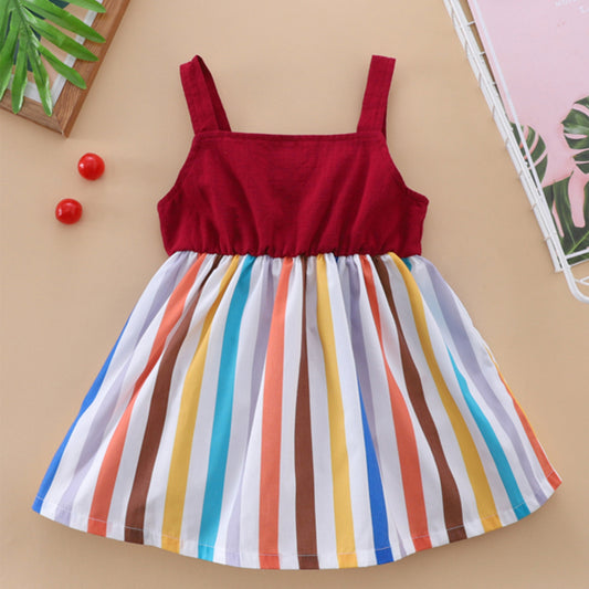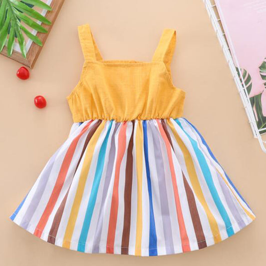 Kids Stylish Colorfull Strips Design Midi Frock Dress for Baby Girl.
