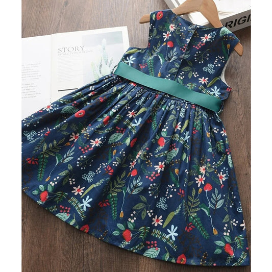 BabyGirl's Cotton Dark Blue Floral Designer Frocks & Dresses for Kids.