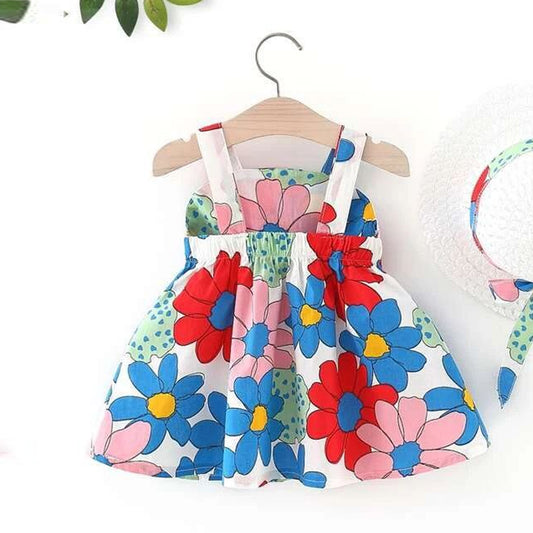 Toddler Girls Allover Multi Floral Designer Frock & Dresses for Baby Girl.