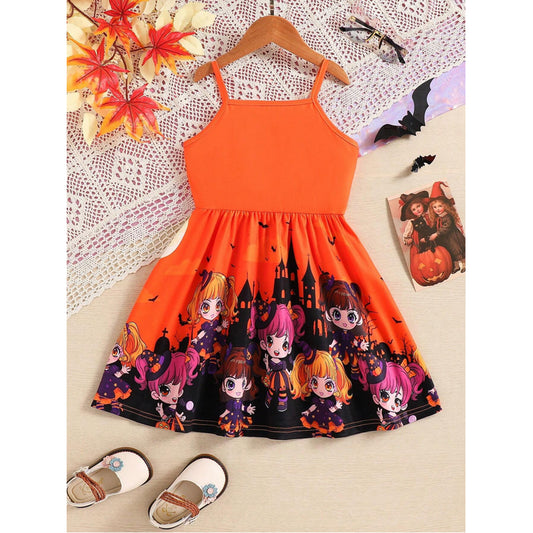 Girl's Toddler Spaghetti Strap Dress & Floral Print Square Neck (Combo Pack Of 2) For Girl's.
