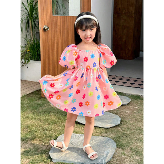 Girl's Toddler Heart Allover & Floral Print Square Collar Balloon Short Sleeve (Combo Pack Of 2) For Girl's.