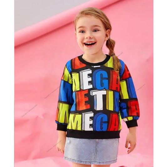 Venutaloza Letters Print Neck Color Block Full Sleeve T-Shirt For Baby Girl's.