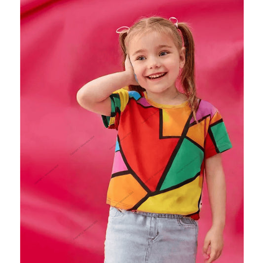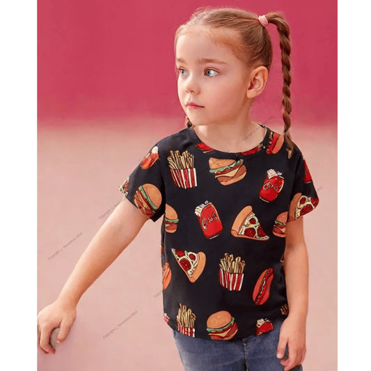 Venutaloza Food Print Scoop Neck Color Block T-Shirt For Baby Girl's..