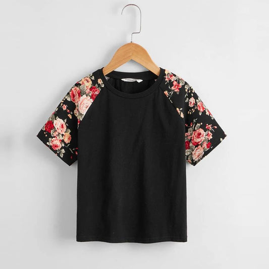 Venutaloza Floral Print Raglan Sleeve T-Shirt For Baby Girl's.