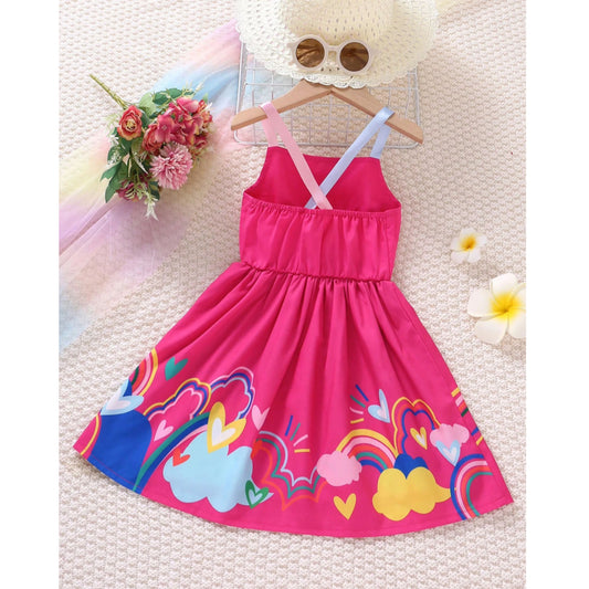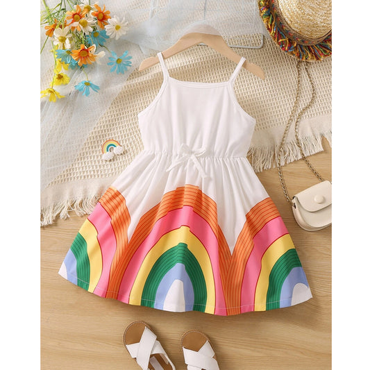 Venutaloza Cute Baby Girl Rainbow & Heart Print Cami Dress For Girl's.