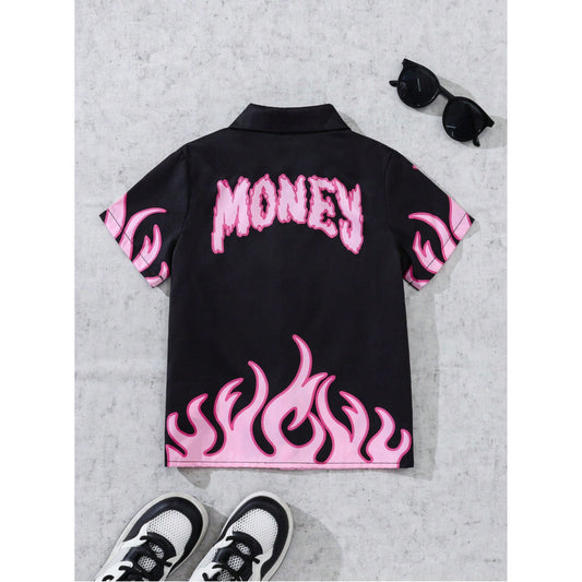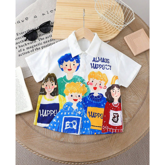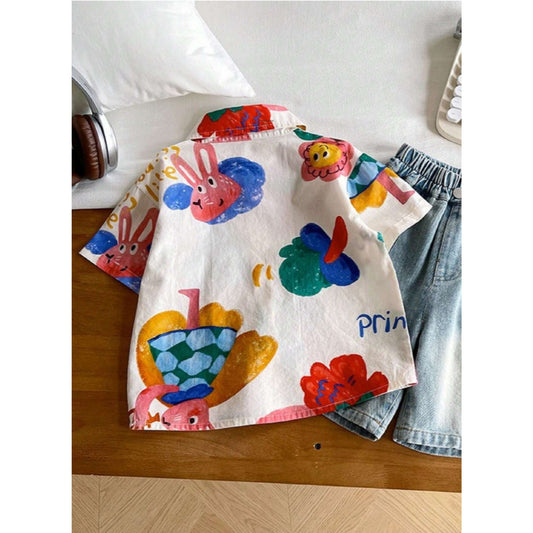 Venutaloza Cartoon Character Letter Print Short Sleeve Casual Shirt For Boy.