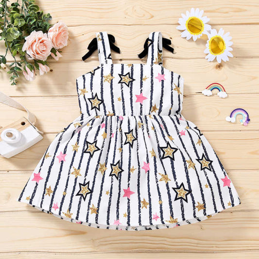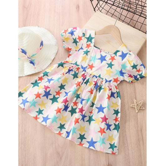 Baby Girl's Cotton Designer Star Multi Colour Star Frocks & Dresses for Kids.