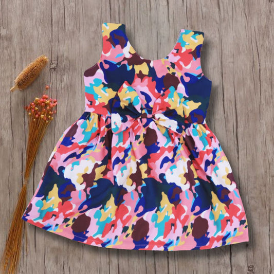 Babygirl's Brush Print Keyhole Designer Frocks & Dresses for Kids.
