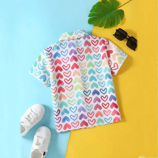 Venutaloza Allover Heart Designer Print Button Front Shirt For Unisex.