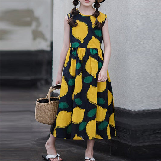 BabyGirl's Cotton Black Yellow Lemon Designer Frocks & Dresses for Kids.