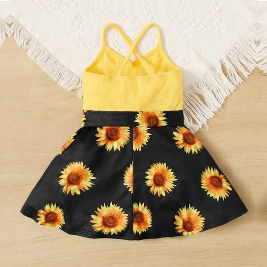 BabyGirl's Stylish Cotton Yellow SunFlower Cami Frocks & Dresses for Kids.