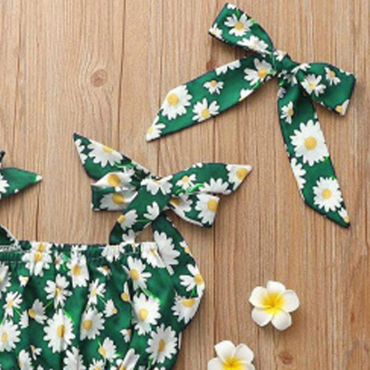 Crop Cami Top & Ditsy Lining Layered Shorts Set For Baby Girls.