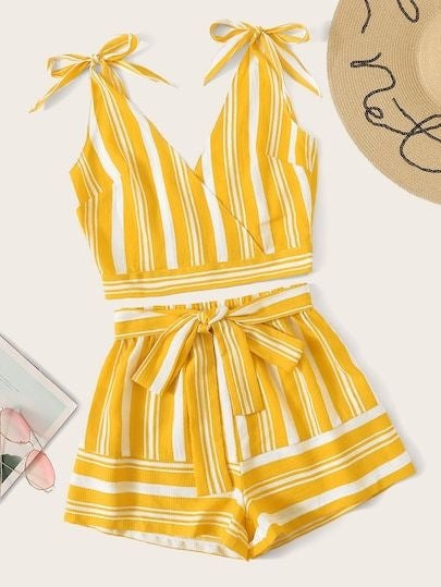 Crop Stylish Yellow Linings Top Sleeveless And Shorts For Baby Girls.