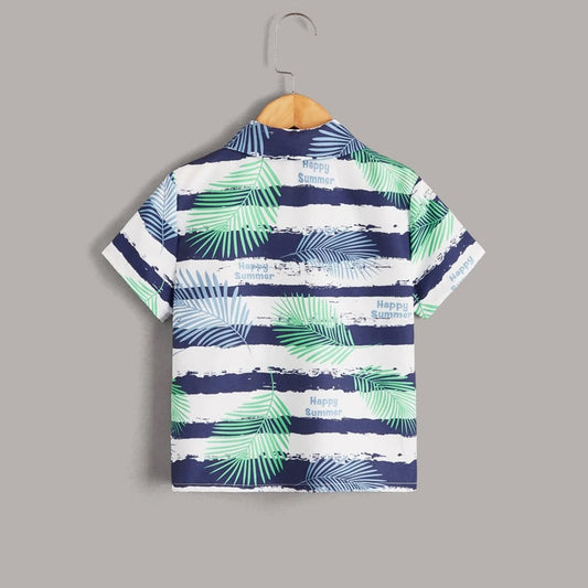 VENUTALOZA Boy's Striped & Tropical Border Print Short Sleeve Shirt For Boy.