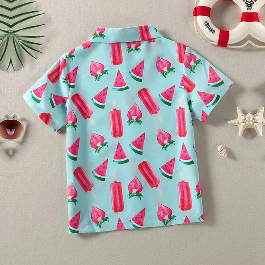 VENUTALOZA Toddler Strawberry And Watermelon print Graphic & Button Front Shirt For Unisex.