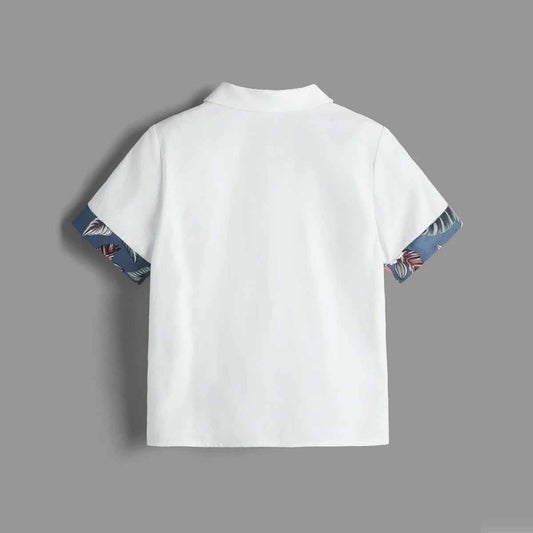 Venutaloza Toddler Boys White Tropical Floral With Patched Pocket Sunshne Designer Print Button Front Shirt For Boys.
