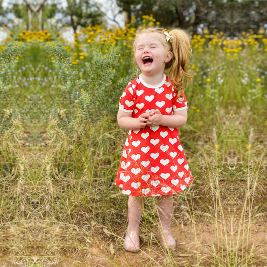 Kids Stylish Heart Design Ruffle Trim Frocks & Dresses for Baby Girl.