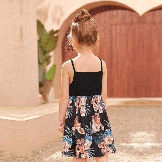 BabyGirl's Cotton Black Multicolor Foral Designer Frocks & Dresses for Kids.