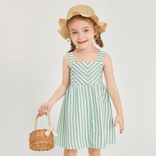 BabyGirl's Cotton Green Striped Cami Frocks & Dresses for Kids.