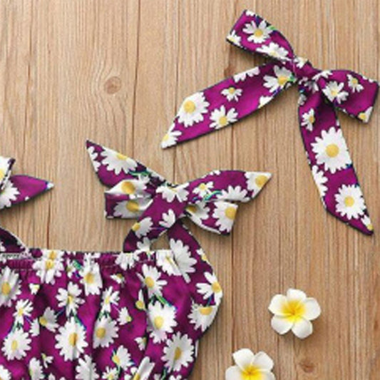 Floral Print Tie Front Top and Skirt Set For Baby Girls.