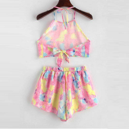 Unique Rainbow Design Crop Top Sleeveless And Shorts For Kids.