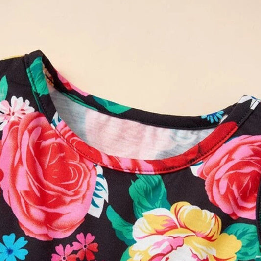 Girls Floral Print Rounnd Neck Sleeveless Casual Dress For Spring.