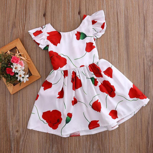 Baby Girl Floral Printed Dress in Red Rose For Girls.
