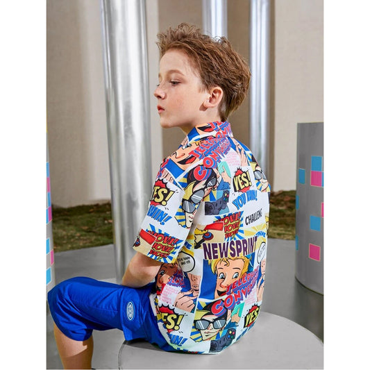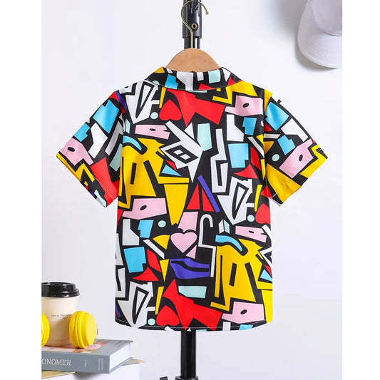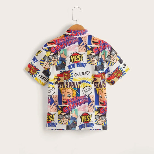 VENUTALOZA Toddler Boys Pop Art print Graphic & Button Front Shirt For Boy.
