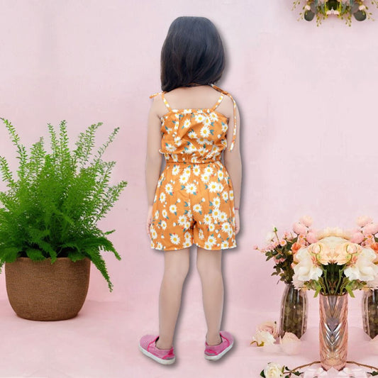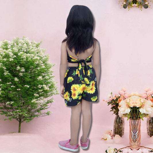 BabyGirl's Stylish Yellow Sun_Flower Design Top & Shorts For Kids.