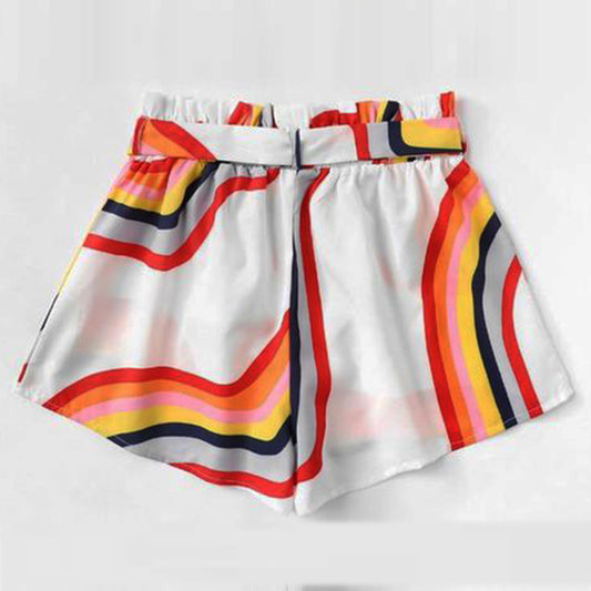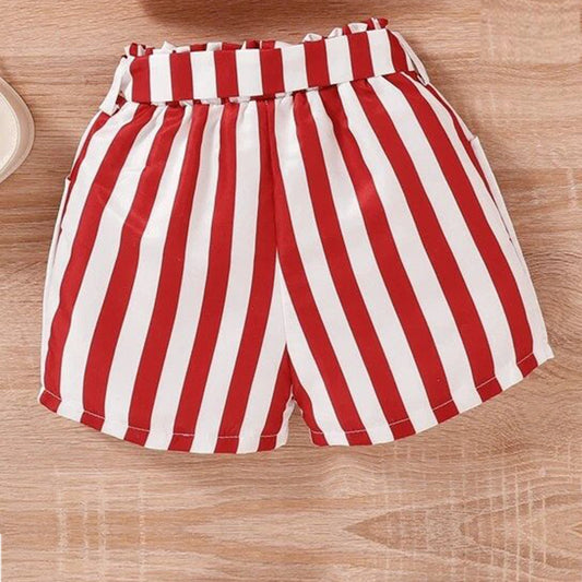 Toddler Girls Block Striped Belted Shorts For BabyGirls.