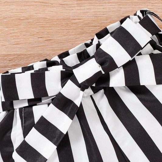 Toddler Girls Striped Black Peparbag Waist Belted Shorts For BabyGirls.